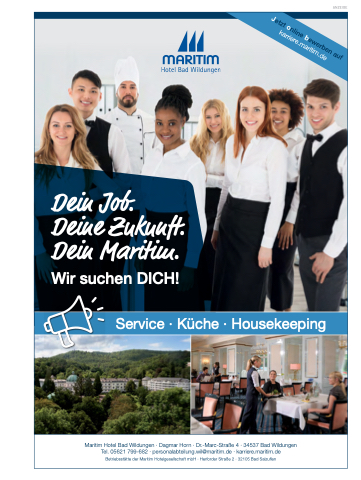 Maritim Hotel Bad Wildungen · Dagmar Horn · Dr.-Marc-Straße 4 · 34537 Bad Wildungen Tel. 05621 799-682 · personalabteilung.wil@maritim.de · karriere.maritim.de Betriebsstätte der Maritim Hotelgesellschaft mbH · Herforder Straße 2 · 32105 Bad Salzuflen