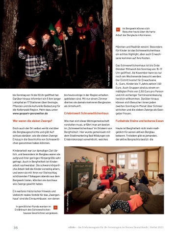 Doch auch der Ort selbst verrät viel über die Bergbaugeschichte und gibt Auf- schluss darüber, wie die sieben Zwerge Einzug in die Geschichte von Schneewitt- chen genommen haben könnten.