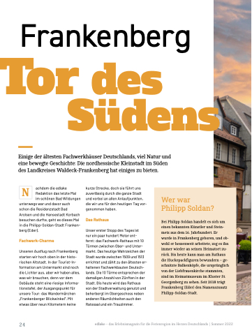 unterwegs war und davor auch schon die Residenzstadt Bad Arolsen und die Hansestadt Korbach besuchen durfte, geht es dieses Mal in die Philipp-Soldan-Stadt Franken- berg (Eder).