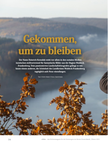 Der Name Heinrich Kowalski steht vor allem in den sozialen Medien inzwischen stellvertretend für fantastische Bilder aus der Region Waldeck- Frankenberg. Dem passionierten Landschaftsfotografen gelingt es wie kaum einem anderen, die Schönheit des Landkreises Waldeck-Frankenberg tagtäglich aufs Neue einzufangen.