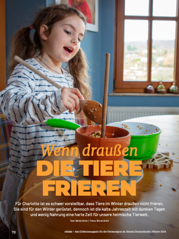 Für Charlotte ist es schwer vorstellbar, dass Tiere im Winter draußen nicht frieren. Sie sind für den Winter gerüstet, dennoch ist die kalte Jahreszeit mit dunklen Tagen und wenig Nahrung eine harte Zeit für unsere heimische Tierwelt.